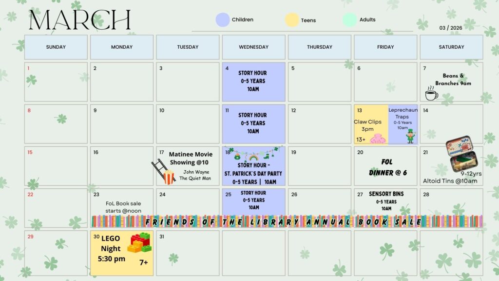 Friends of the Library Annual Book Sale early spring, exact dates to be announced